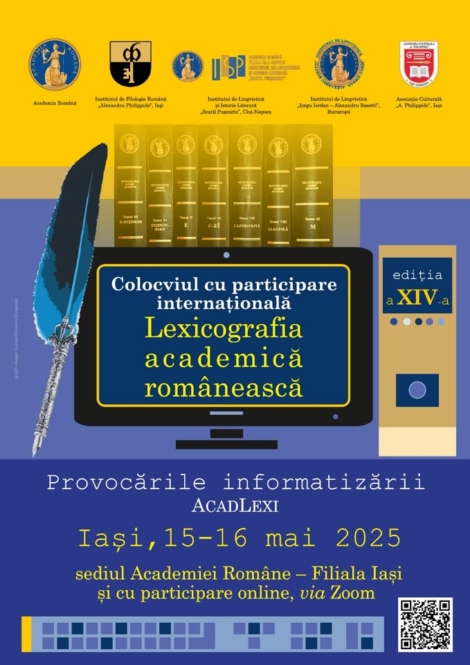 Cercetătorii lexicografi din institutele Academiei Române organizează – pentru prima dată împreună – a XIV-a ediție a Colocviului cu participare internațională „Lexicografia academică românească. Provocările informatizării” – AcadLexi 2025, în perioada 15–16 mai 2025 in situ (la sediul Academiei Române – Filiala Iași) și online, via Zoom.Organizatorii sunt: Departamentul de lexicologie și lexicografie de la Institutul de Filologie Română „Alexandru Philippide”, Academia Română – Filiala Iași, Departamentul de lexicografie și etimologie de la Institutul de Lingvistică „Iorgu Iordan – Alexandru Rosetti” al Academiei Române, București, Departamentul de lexicologie și lexicografie de la Institutul de Lingvistică și Istorie Literară „Sextil Pușcariu” al Academiei Române – Filiala Cluj-Napoca, în colaborare cu Asociația Culturală „A. Philippide” din Iași.
