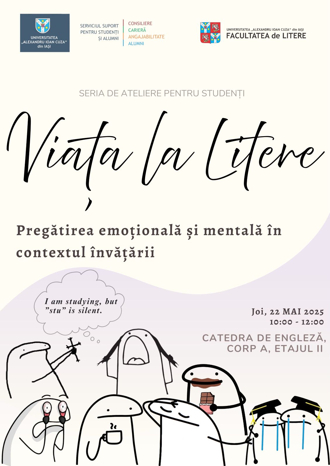 Facultatea de Litere împreuna cu Serviciul pentru Studenți (SSA) organizează seria de ateliere pentru studenți „Viața la Litere”.