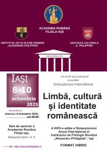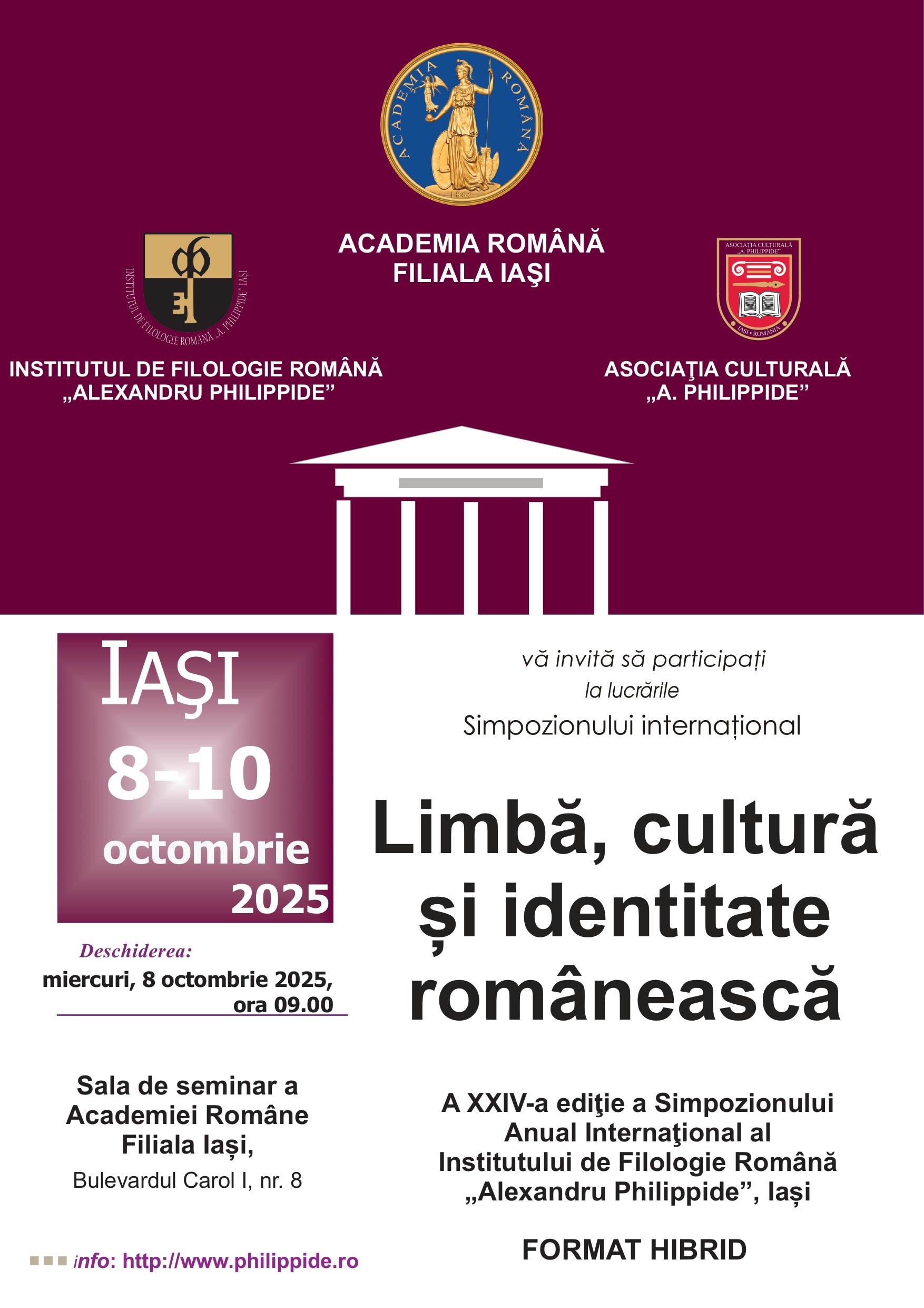 În cadrul „Zilelor Academice Ieșene”, Institutul de Filologie Română „Alexandru Philippide”, Academia Română-Filiala Iaşi, în colaborare cu Asociaţia Culturală „A. Philippide”, organizează A XXIV-a ediție a Simpozionului anual internațional al Institutului de Filologie Română „Alexandru Philippide”. Limbă, cultură și identitate românească, Iaşi, 8–10 octombrie 2025 – manifestare științifică de tradiție, la care, în acest an, participă specialişti din Anglia, Canada, Finlanda, Franța, Germania, Italia, Polonia, Portugalia, Republica Moldova, România, Serbia, Spania, Ucraina și Ungaria. Din România, vor susține comunicări cadre didactice universitare, cercetători, doctoranzi și masteranzi din Bacău, Baia Mare, Brașov. București, Cluj-Napoca, Constanța, Galați, Iași, Oradea, Suceava, Târgu-Mureș, Timișoara.