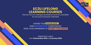 În perioada 10 decembrie 2025 – 12 ianuarie 2026, te poți înscrie la cursurile EC2U de învățare pe tot parcursul vieții (Lifelong Learning) pentru semestrul al doilea al anului universitar în curs. Aceste cursuri sunt oferite de universitățile din cadrul Alianței EC2U (European Campus of City-Universities), selectate de subgrupul EC2U Lifelong Learning WP8 și puse la dispoziția studenților.