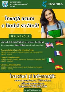 Centrul de Limbi Străine și Formare Continuă al Universității ”Alexandru Ioan Cuza” din Iași anunță începerea perioadei de înscrieri la noua sesiune a cursurilor de limbi străine.